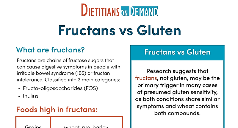 Fructan and gluten intolerances can be easily confused, and therefore crucial for dietitians to know the difference. Check out this information-packed infographic covering the basics of what fructans are, foods high in fructans, and nutrition recommendations for fructan intolerance. Keep this on hand for the next time you see a patient or client with IBS or a fructan intolerance.