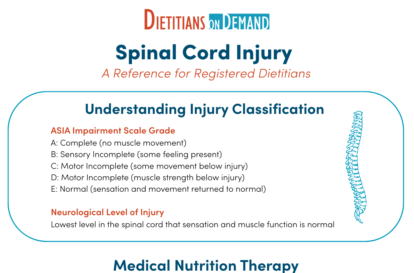 Individuals with a spinal cord injury (SCI) have unique nutrition requirements and considerations that the RDN must account for. Check out this information-packed resource that covers how SCIs are classified, estimating needs in the acute and post-acute phases, and complication-specific nutrition strategies. Whether you work in acute care, rehab, long-term care, or the outpatient setting, be sure to download today!